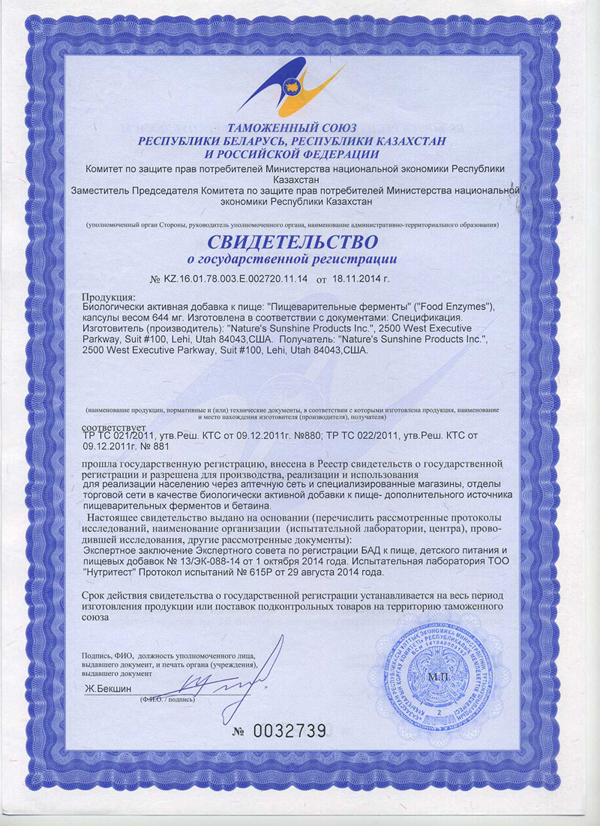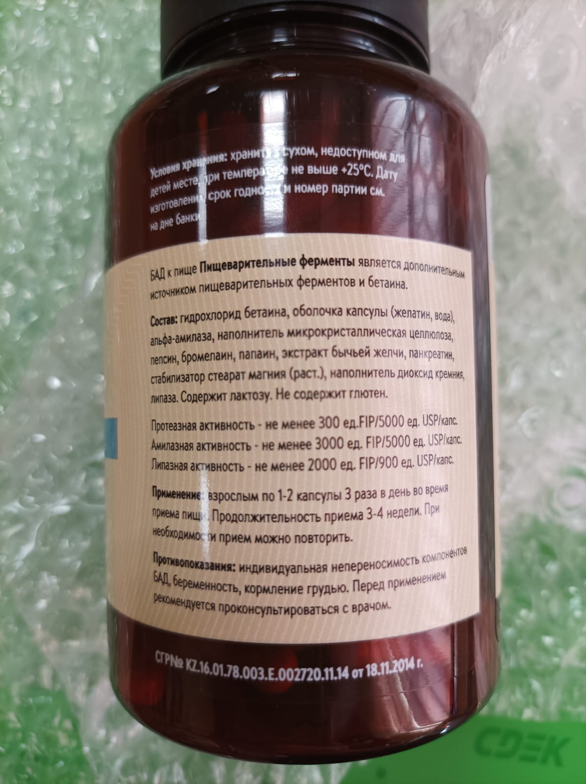 Пищеварительные ферменты компании NSP представляют собой комбинацию ферментов животного и растительного происхождения. Они также содержат источник соляной кислоты в виде бетаина гидрохлорида. Он необходим для тех, у кого желудок выделяет недостаточное количество соляной кислоты.