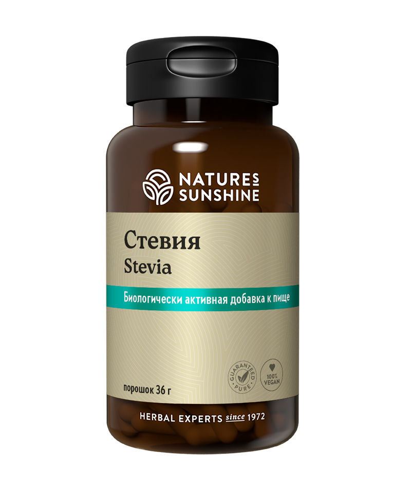 Стевия медовая (Stevia rebaudiana) – многолетний кустарник, родиной которого являются Бразилия и Парагвай. Индейцы вот уже 1500 лет употребляют ее в пищу. В середине ХХ века из стевии были выделены активные ингредиенты – гликозиды (стевиозид, ребаудиазид и др.), которые в 300 раз слаще обычного сахара и при этом имеют нулевую калорийность. Кроме сладких гликозидов, в состав стевии входит много других полезных веществ: антиоксиданты – флавоноиды (рутин, кверцетин), витамины. Стевия нормализует уровень сахара в крови и рекомендуется при нарушении обмена веществ, сахарном диабете, атеросклерозе, нарушении жирового обмена. Стевия улучшает работу сердечно-сосудистой и иммунной систем, щитовидной железы, печени, нормализует давление, обладает антиоксидантным, адаптогенным, противовоспалительным действием. При регулярном употреблении стевии снижается содержание глюкозы в крови и вязкость крови. Она безвредна при длительном употреблении, в отличие от синтетических заменителей сахара (сахарина, ацесульфата, аспартама и др.). Стевиозиды подавляют развитие многих микроорганизмов, защищают зубы от кариеса, а десны от парадонтоза. За рубежом выпускают зубные пасты и жевательные резинки со стевиозидом. В состав зубных паст NSP Саншайн Брайт также входит стевия.